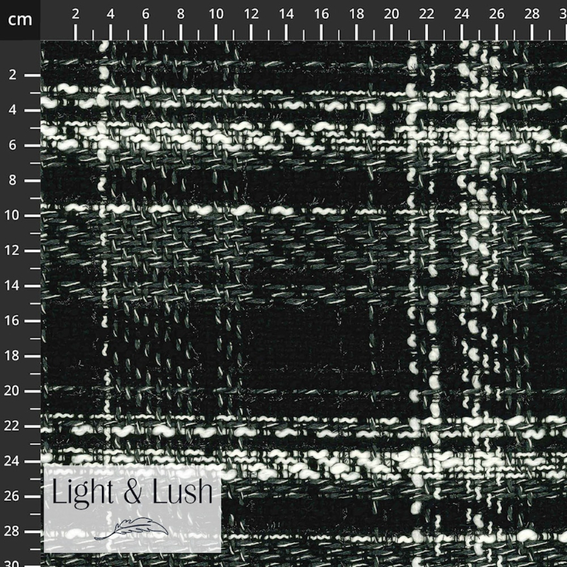 Bouclé ist ein Gewebe, dessen Oberfläche der Ripsbindung ähnelt. ... Bouclé wird zum Teil oder zur Gänze aus Haargarn und Effektzwirn hergestellt, wobei oft Knoten, Noppen und Schlingen verwendet werden. Beschreibung: Dieser Woll Bouclé ist knitterarm. Wir empfehlen Bouclé zu unterfüttern und Vlieseline zu verwenden. Ein toller Stoff für trendige, selbstgenähte Mode. Unsere Empfehlung: Ideal als Rock,Jacke, Weste, Mantel, Buisnesskleidung, Kleid etc Material: 53 % Acryl 29 % Polyester 10 % Baumwolle Breite:145 cm Gewicht (g/m²):370,0 Farbe:schwarz weiss Pflege: Handwäsche, Bügeln Stufe 1, nicht trocknergeeignet, |