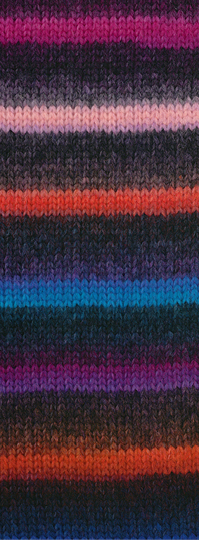 Mehrfarbige Streifen und eine flauschige, voluminöse Struktur: Print-Garn Bomba sorgt für schnelle,