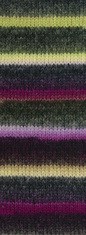 Mehrfarbige Streifen und eine flauschige, voluminöse Struktur: Print-Garn Bomba sorgt für schnelle,