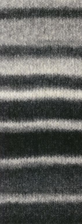 Voluminöses Alpakagarn mit Effektstruktur und Streifen im Farbverlauf mit Lurexfaden